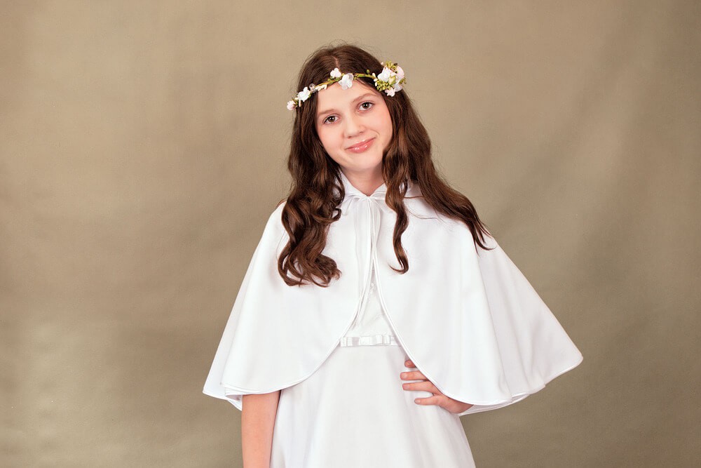 Idealne dla mamy, która szuka prostoty w najlepszym wydaniu – bolerko, które dopełnia całość, nie przytłaczając, ale podkreślając wyjątkowość tego dnia Pierwszej Komunii Świętej .